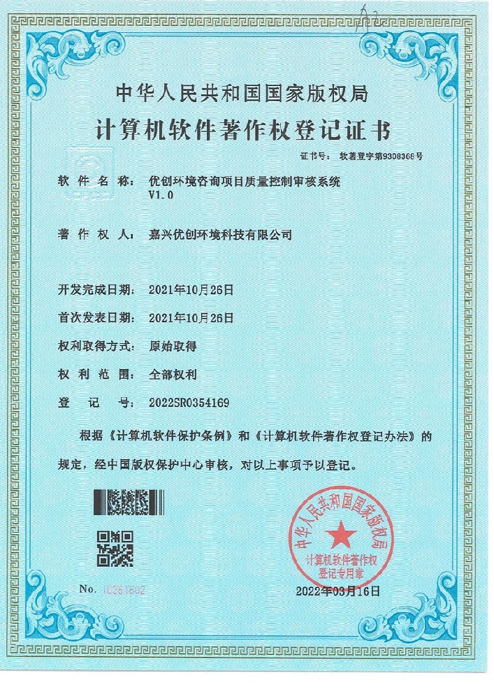 质量控制审核系统软件著作权登记证书