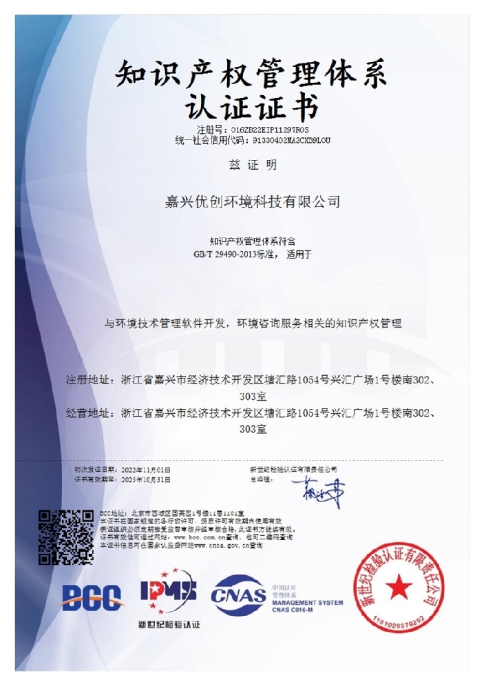 知识产权认证证书