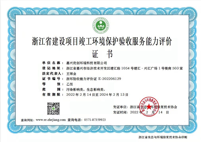 环境保护评价证书