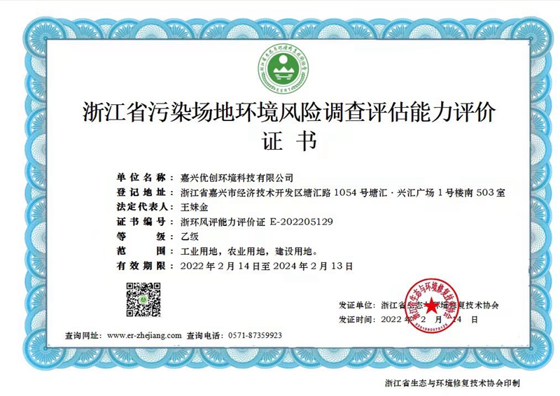 浙江省污染场地环境风险调查评估能力评价证书