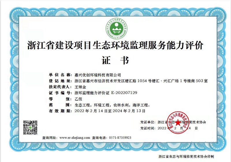 生态环境监理服务能力评价证书