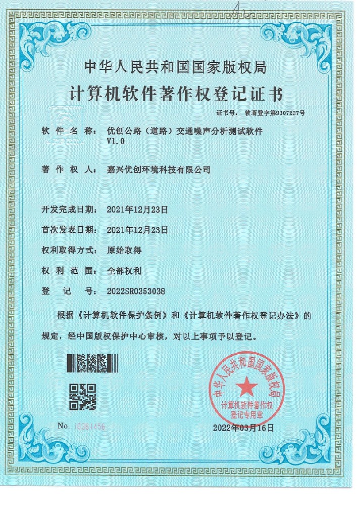 交通噪声分析软件著作权登记证书