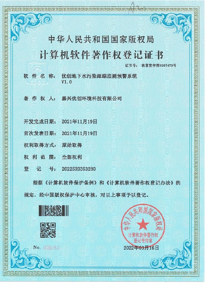 地下水污染检测系统软件著作权登记证书