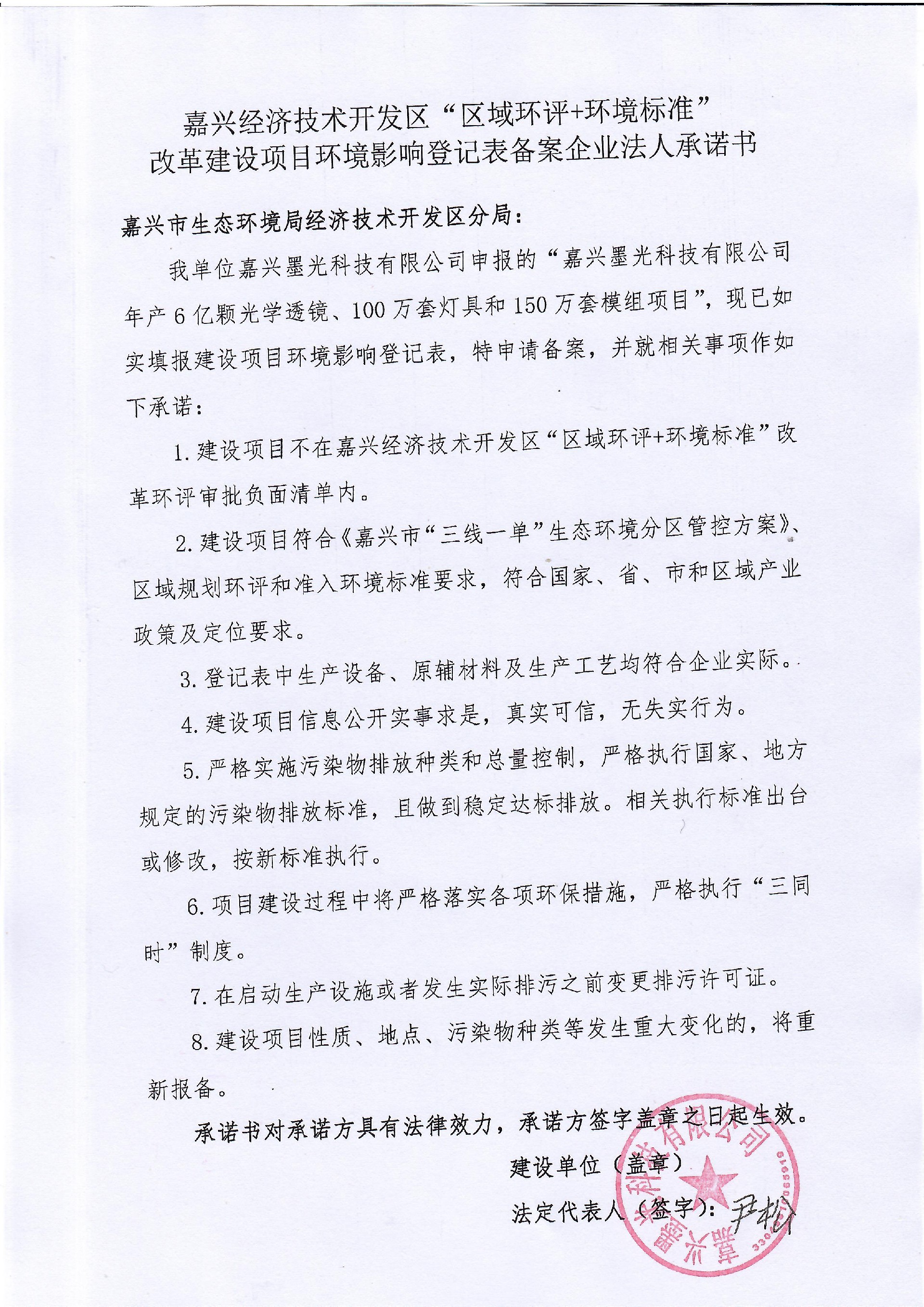 嘉兴墨光科技有限公司年产6亿颗光学透镜、100万套灯具和150万套模组项目